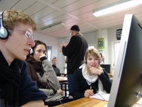 ![]() François, Sandra et Lucie à la recherche de sons pour le "Filament" |